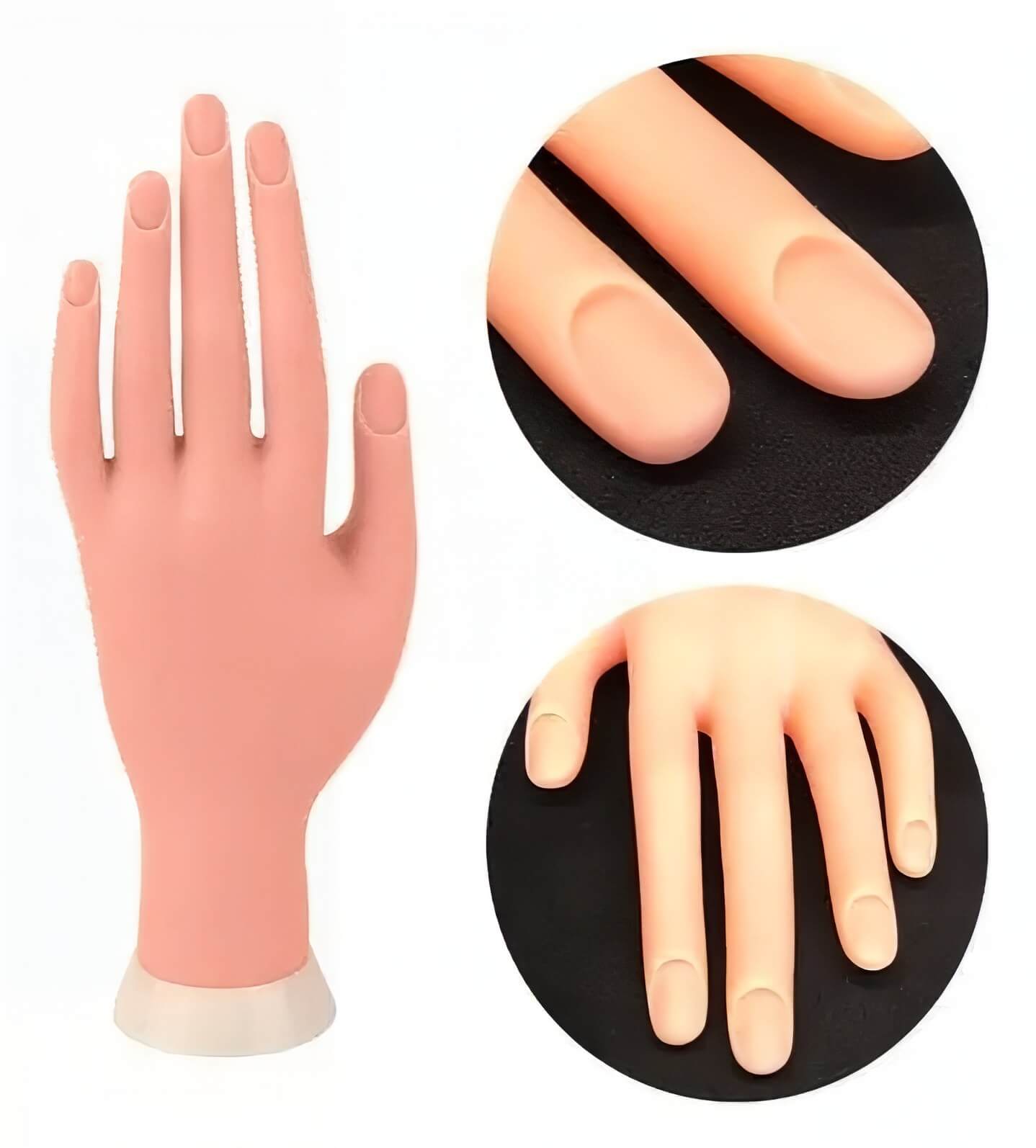 Diseñada en hule y con una base de plástico, este modelo ofrece una estabilidad inigualable, permitiéndote trabajar con comodidad y precisión. Las uñas de la mano de práctica no tienen borde, una característica que facilita enormemente la realización de trabajos con acrílicos. Además, su diseño flexible te permitirá manipularla con facilidad, adaptándose a cualquier posición que necesites para tu trabajo. Este modelo no incluye adhesivo, lo que te permitirá cambiar las uñas con facilidad y sin residuo.