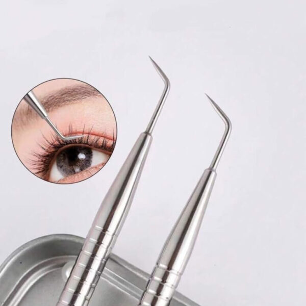 Aplique en la parte inferior del bigudie y luego coloque este en el párpado, a lo largo de la línea de las pestañas. Usando una herramienta para levantar pestañas, envuelva con cuidado una pequeña sección de las pestañas en el bigudie en dirección hacia arriba y asegúrese de que las pestañas estén rectas.